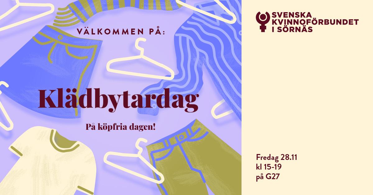 Har du fått nog av Black Friday och konsumtionshets? Fira Köpfriadagen med oss genom att byta kläder istället för att köpa nytt! Ta med hela, rena plagg och hitta något nytt att älska i någon annans garderob. Vi bjuder på snacks och dryck!